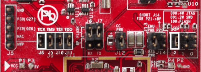 JTAG J8(emulator side) toSOP 2(CC3200) side. -